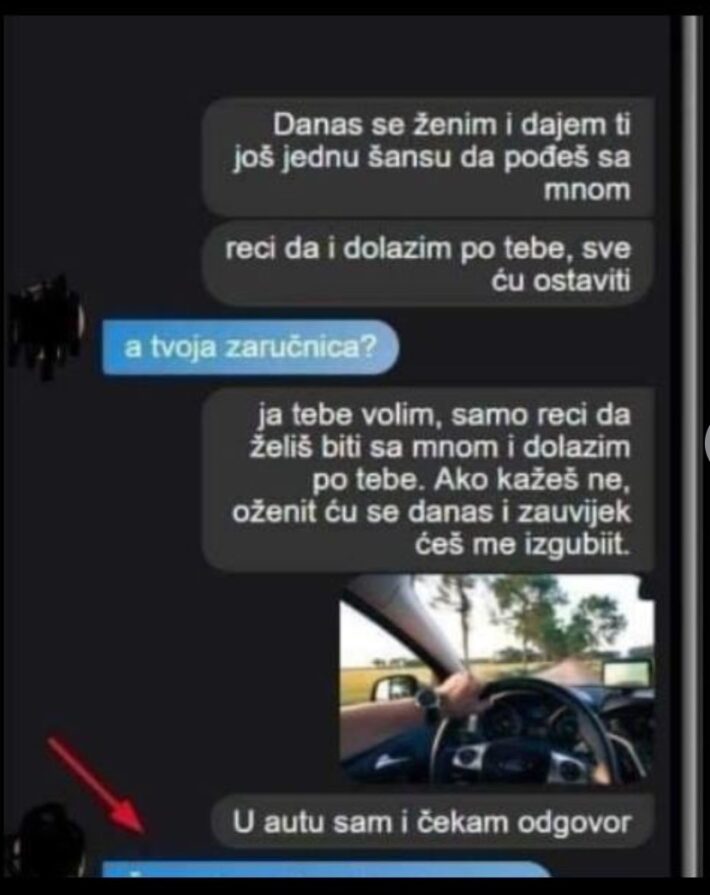 Zabava MOJ BIVŠI MOMAK SE DANAS ŽENI I POSLAO MI JE OVU PORUKU: Ponudio mi da pobjegnemo skupa, RAZMISLILA SAM I OVO MU ODGOVORILA, njegova REAKCIJA ME ŠOKIRALA! samir - February 11, 2024